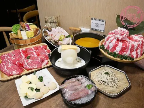 牛肉可以選美國或澳洲,豬肉有活菌梅花豬、肥黑豬五花等,他家的海鮮一直都是碗粿的最愛,更厲害的是一直更動的菜盤,沒有低價的火鍋料,可以吃到滿滿的青菜是這一家的特色,都還是不滿意還可以菜盤換肉,或者是選白色蔬菜、綠色蔬菜。