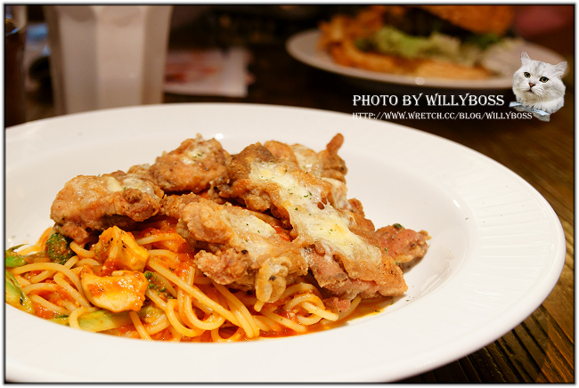 蕃茄醬汁的口味溫潤順口不會太酸,麵條Q彈但是和醬料沒有融合的很好(應該說沒很入味嗎?),有點小小可惜。