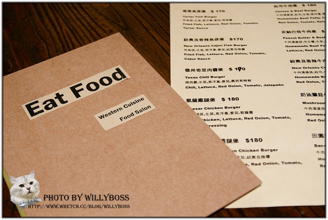 做的有點質感的菜單,裡頭有些炸雞翅、炸魚等等的美式菜色和飲料,另外還有義大利麵和焗烤,品項相當多較難一一分享,有興趣的人再去挖寶看看好了:P。
