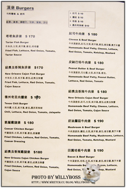 漢堡獨立一張MENU,意思應該是王牌無誤,價格和中原一帶其他漢堡店比應該是比較貴一點。