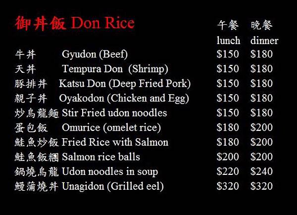定食 丼飯 特餐的菜單