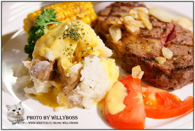 蒜香碳烤小牛沙朗牛排8盎司套餐590元。