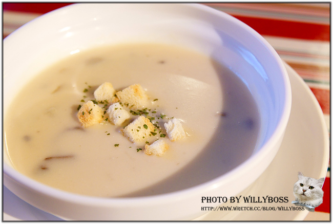 蘑菇濃湯,在各種口味濃湯中我最喜歡的就是蘑菇濃湯了,很可惜真的有賣且做的很好吃的餐廳不算多,班格斯的就很OK,喝起來有濃郁的磨菇香氣。