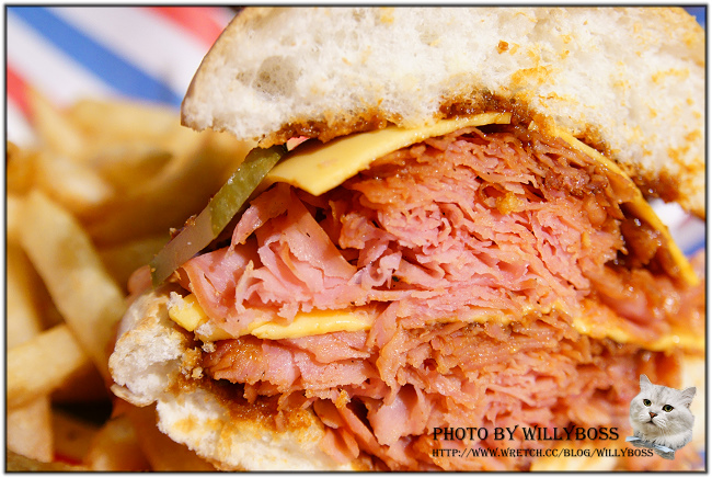 牛仔豪華火腿堡單點250元,吃漢堡重點當然是牛肉漢堡肉,原本對火腿漢堡沒有什麼興趣,不過熱心的牛仔告訴我們這道是很推薦的特別菜色,於是就貪心的單點來吃吃看,結果果然很好很強大!