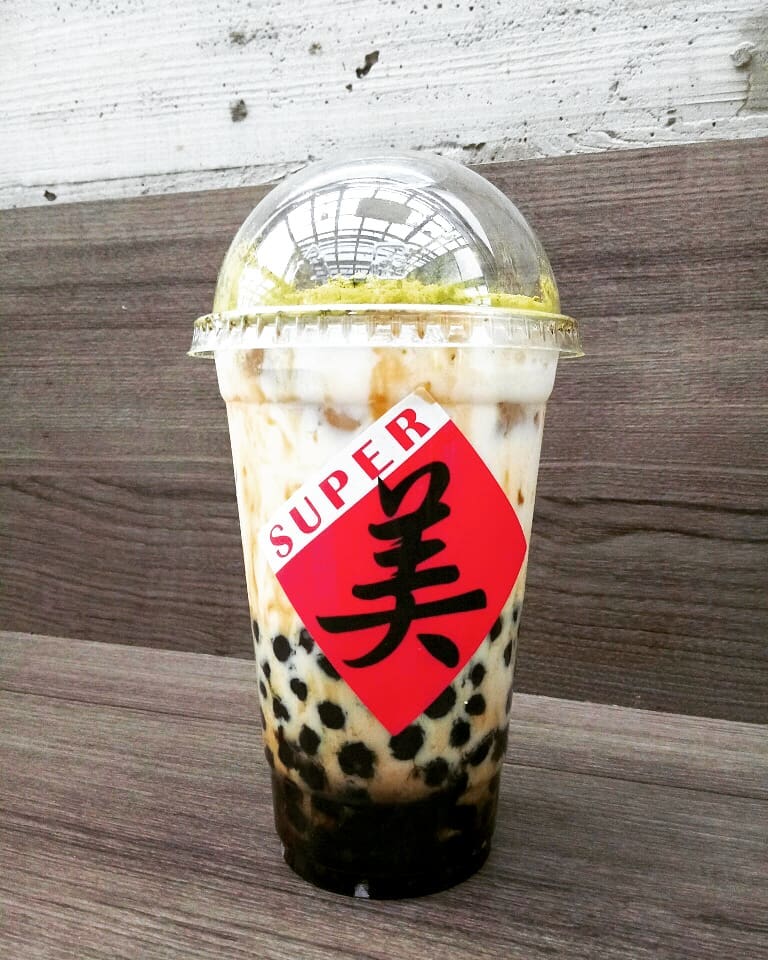 抹茶奶蓋粉圓黑糖鮮奶,把它攪拌均勻後有點黑糖抹茶拿鐵fu,所以整體搭配起來才這麼無違和感吧!!比起一般的黑糖珍珠鮮奶又多了一種變化,有來到一中,值得一試唷!!