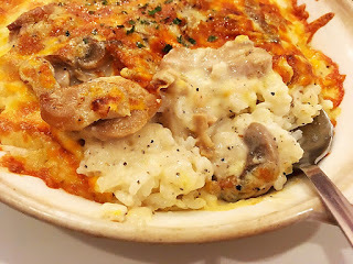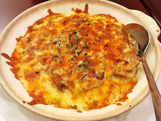 焗烤類食物是我的愛,每次進餐廳看到焗烤必點,考慮到1y4m的小福寶也可以吃,點燻雞才不用以食物剪剪碎,因此點了焗烤燻雞飯。