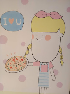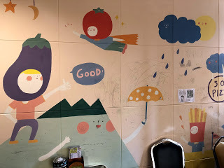 二樓牆上有知名插畫家米工的創作,孩子們都好喜歡這些可愛的圖案,一直去摸。