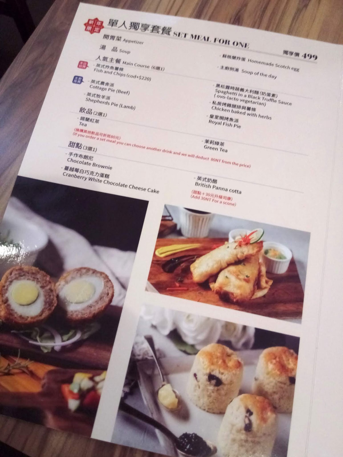 餐點 / 金額:單人獨享套餐 NTD499 (春節特別Menu)