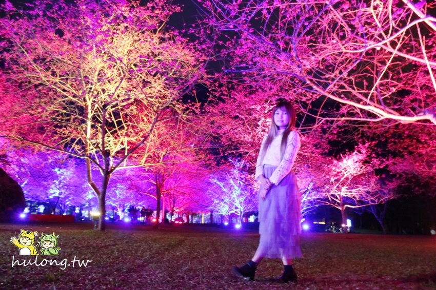 燈光漸層下的櫻花光影會有不同的氛圍,2019九族櫻花季-夜櫻季只到3月2日,