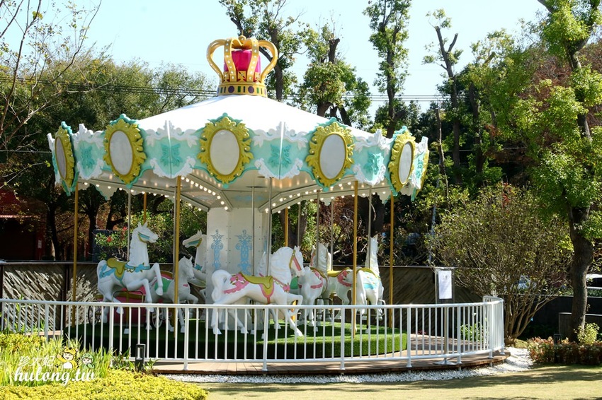 戶外的旋轉木馬不只是裝飾造景,更提供給住客免費搭乘拍照,