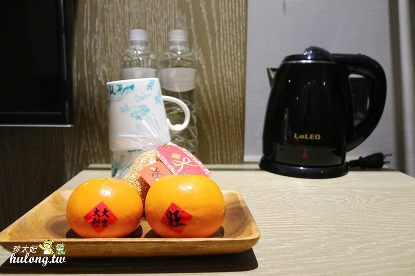 交誼廳除了有咖啡機、茶包,更提供嘉義名產老楊方塊酥讓住客免費吃,