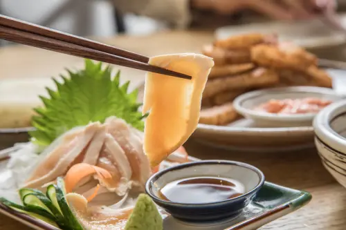 二夜漬臭豆腐是整塊下去油炸,起鍋時再來分切,剖面可以看到有別於一般的臭豆腐,二夜漬臭豆腐的孔洞相當的細緻,顏色就像嫩豆腐一般白嫩