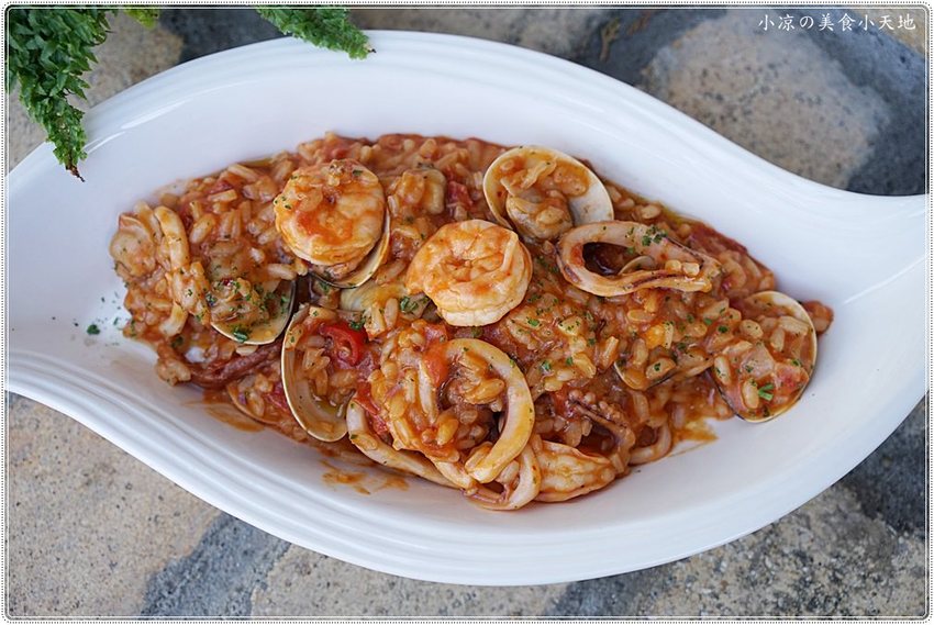 海鮮燉飯燉得很入味,充滿番茄的酸和海鮮的鮮味,加上義大利米去熬煮