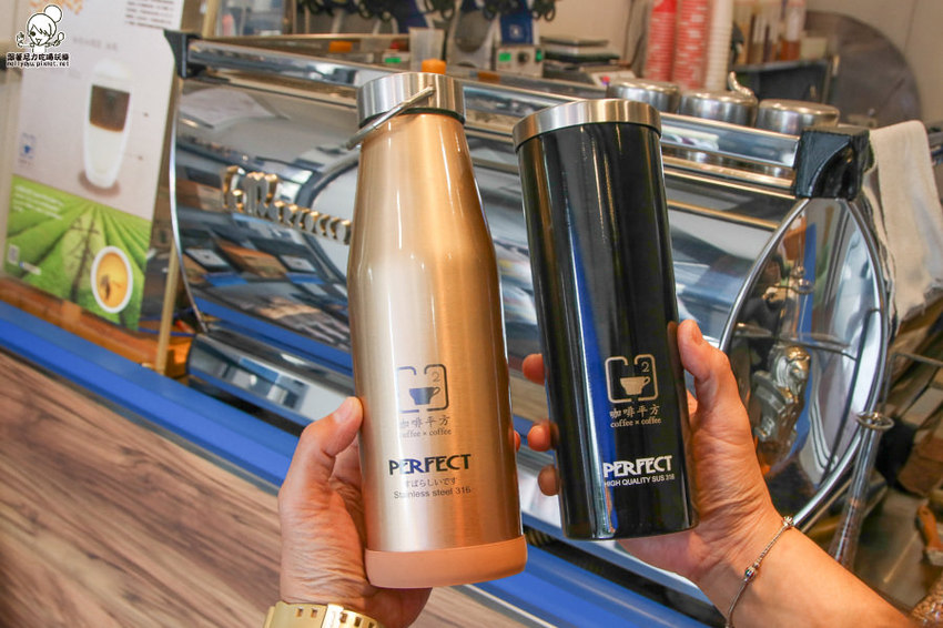 咖啡平方的客製化保溫瓶也受到許多饕客熱愛,保冰、保溫時效很長,我個人非常愛用