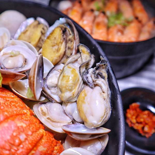 抱蛋螃蟹*1、牡蠣*2、蛤蜊一大份,然後就放不下了啦!