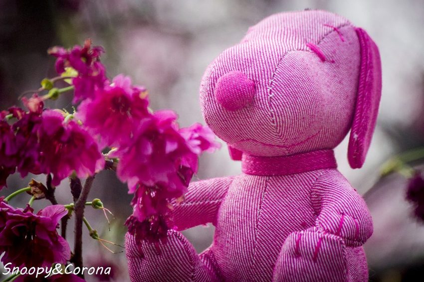 史努比看到好幾位賞櫻的朋友都帶著小玩偶來拍照,