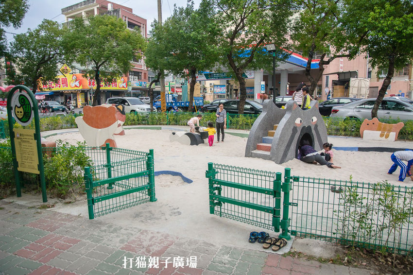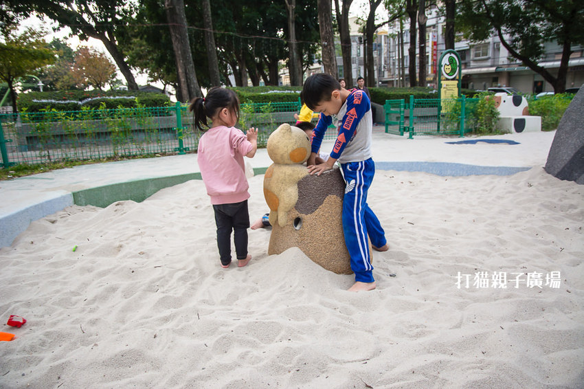 打貓親子廣場是一座小小的公園,或者可以說是一座沙坑,畢竟沙坑佔了廣場的一大部分,