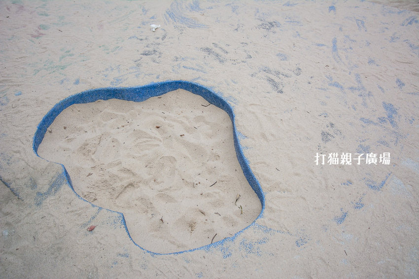 沙坑裡面隨處可見喵星人,像是喵星人的腳掌,然而沙坑雖然在大馬路旁卻不用擔心安全問題,