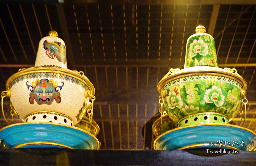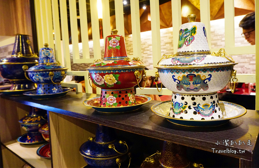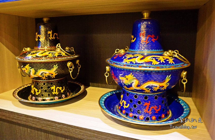 櫃檯上擺放各式各樣華麗的景泰藍鍋,只要你點「特色景泰藍鍋套餐」,都可以自由任選一鍋來使用喔。