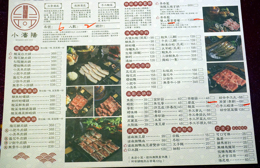 小瀋陽(向上店)菜單和總店完全不同,主打以個人小火鍋為主,