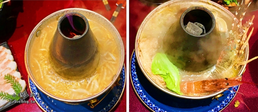 底部木炭炭火滾滾很給力,湯底隨時都是熱呼呼,食材吃起來依舊美味喔!