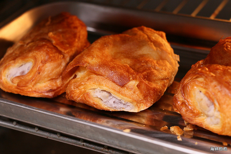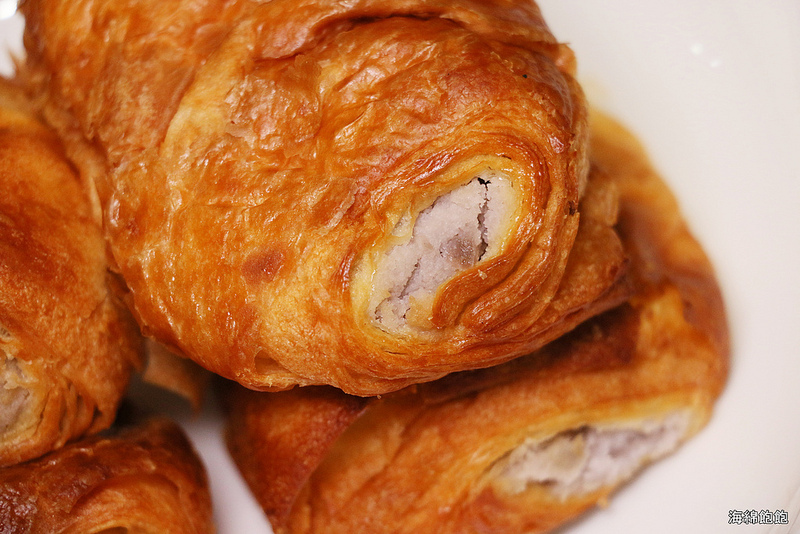 芋頭奶油酥使用可頌麵包,裡面包著芋泥