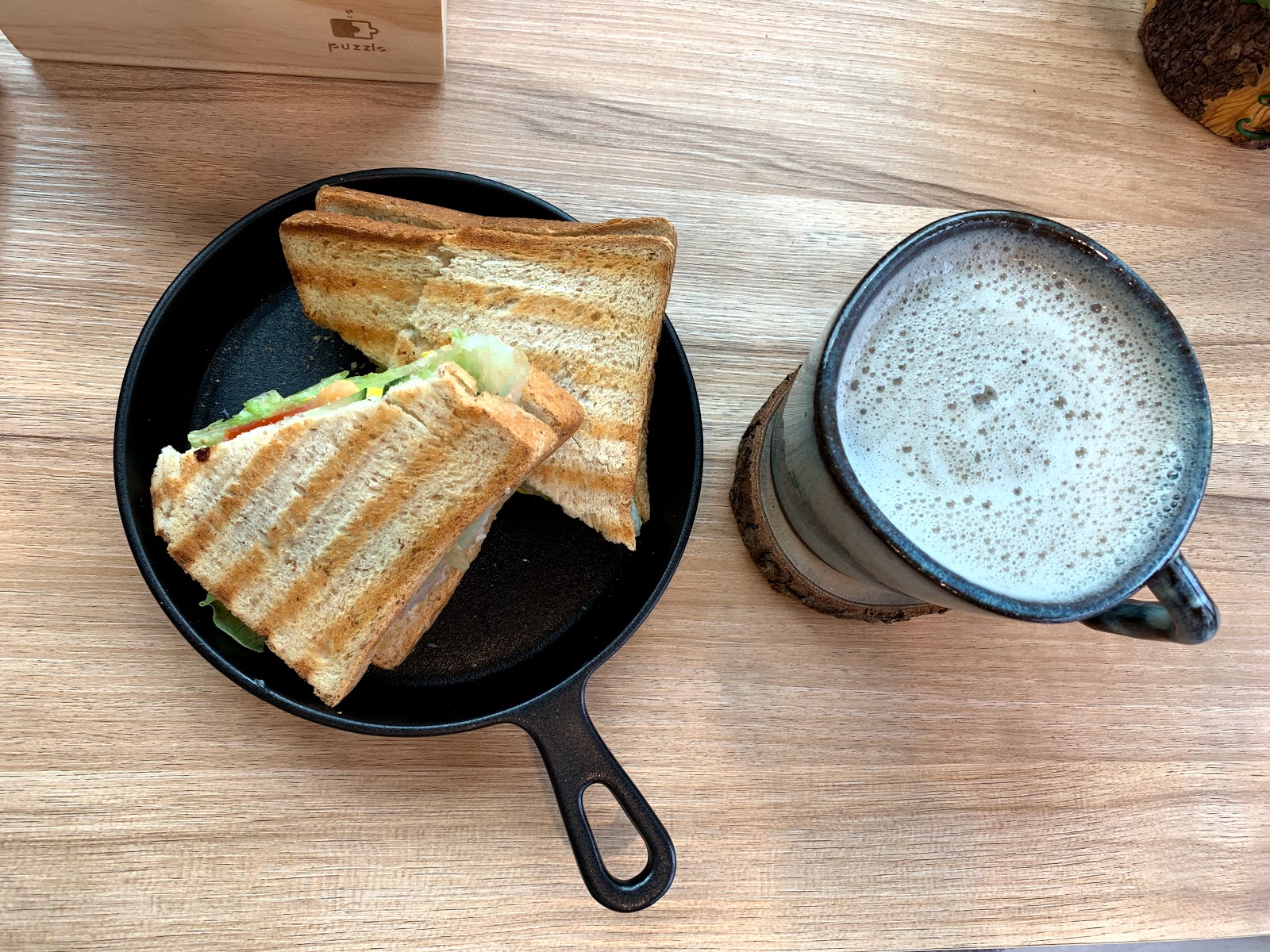 不喝咖啡的朋友,在『puzzle』也有很多飲品做選擇,丸子建議可以嚐嚐『自己打的有機黑豆漿』,飲料是現點現做的,調理機快速地把黑豆打成細碎,將整顆黑豆的營養和纖維完整地呈現,喝起來較傳統早餐店的豆漿濃稠,喝得到食物的原味卻沒有豆渣的礙事,早餐喝一杯熱呼呼的黑豆漿,不僅補充蛋白質,也能促進腸胃蠕動,讓心情與身體都能有正能量。