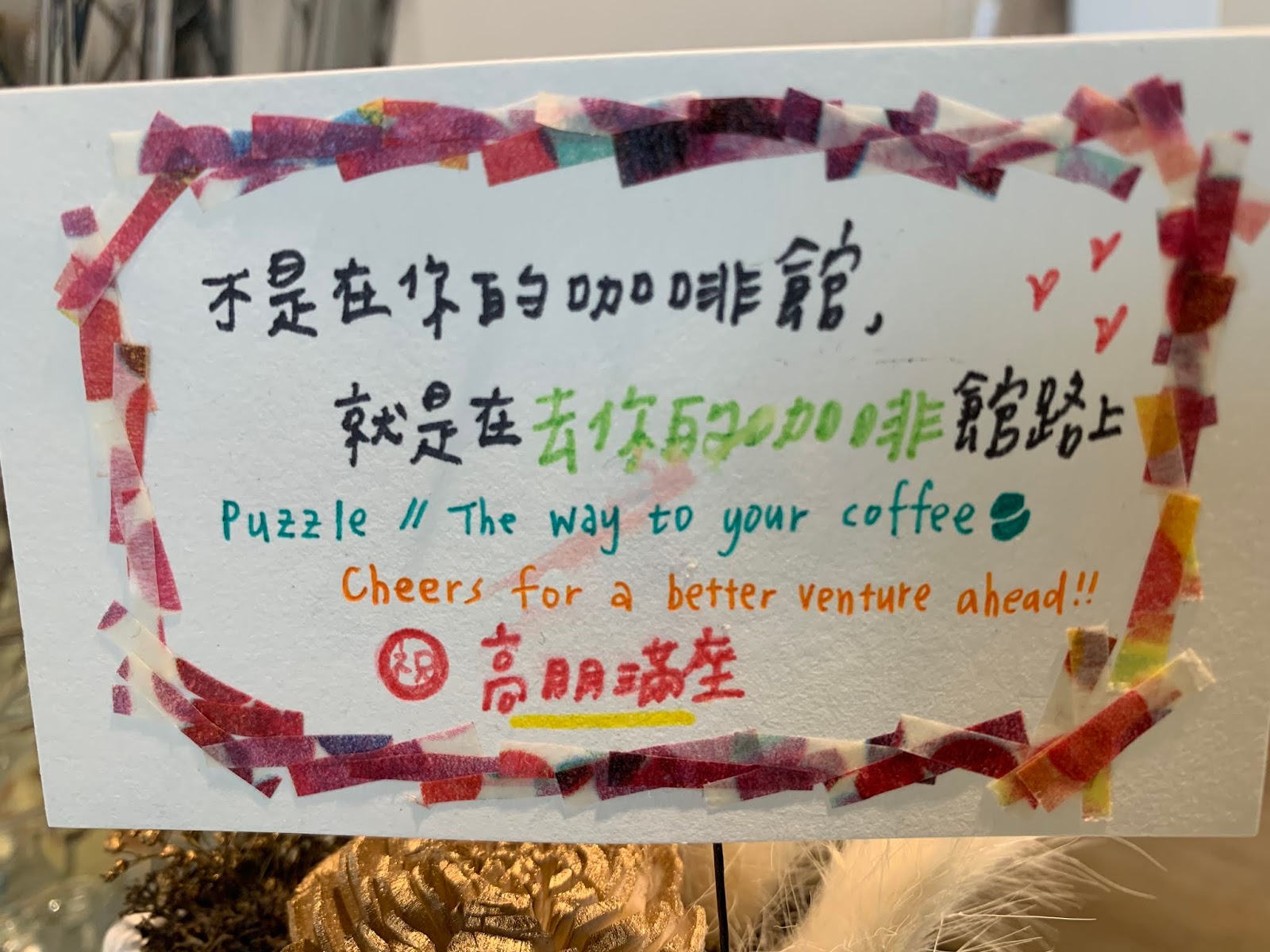 上班工作之餘,能有像puzzle這樣的環境,可以忙裡偷閒喝杯咖啡、吃個特色甜點,也是一種小確幸。看看店主人談到自己創業的一股熱血,二個人互相鼓勵的氣氛,真的連客人都感受到那份『夢想』的味道!