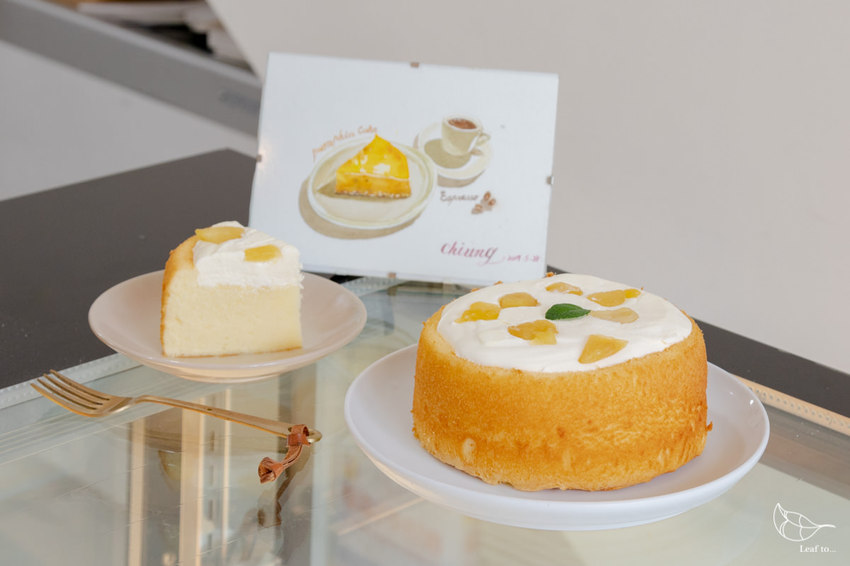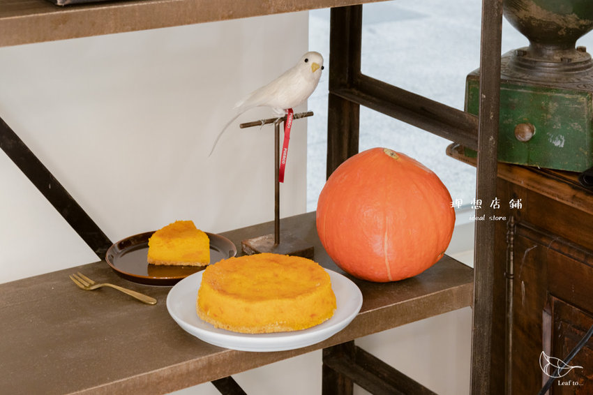季節限定的南瓜蛋糕,是選用台灣各產區的鮮甜南瓜作為主角,其中尤以東昇南瓜為最大宗,當天一旁的層架上也正巧放著一顆橘亮著的東昇南瓜,色澤圓潤,光是南瓜本人看起來就夠誘人了(笑)