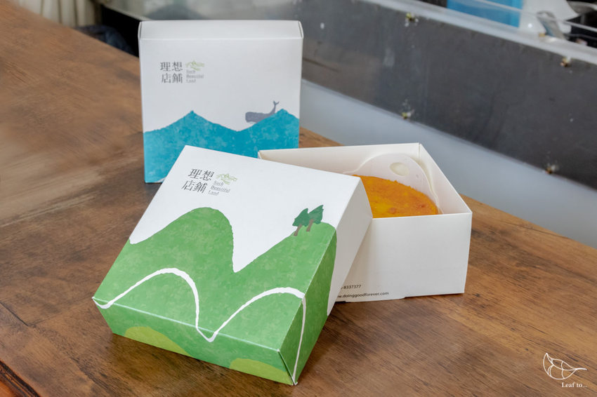 全新設計的蛋糕盒外觀上,採用了富有童趣感的插畫風格,將花蓮的山與海躍於紙盒,希望讓大家從包裝開始,就能感受到理想店鋪使用在地好食材的堅持。