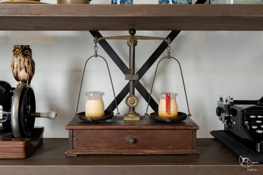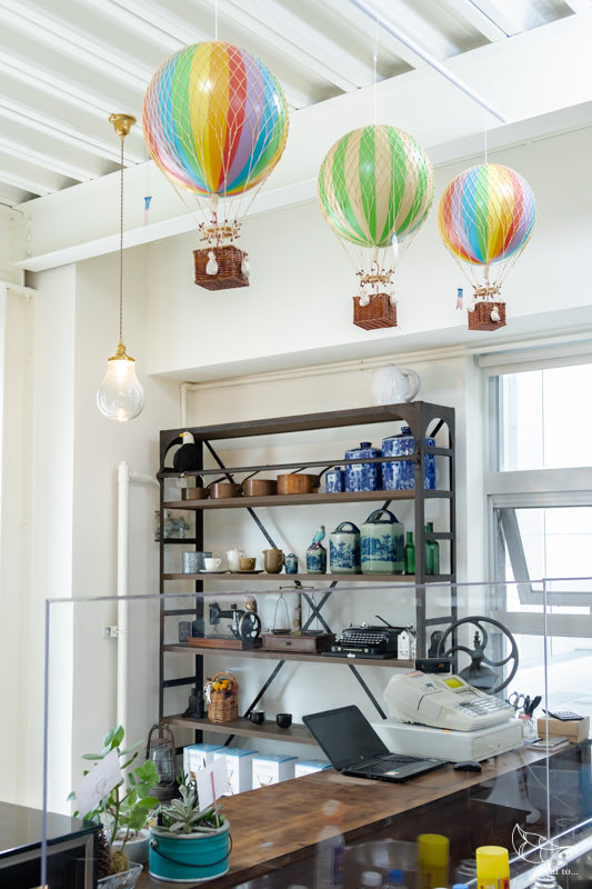 不過店家還是十分用心地,將自己長久以來蒐集的古物老件、餐具杯盤等,當作裝飾與展示放在店內,增添了不少美感。我特別喜歡在櫃檯上方的幾顆熱氣球,高高低低地懸掛著,像是一種對旅行的想望正在飛翔。