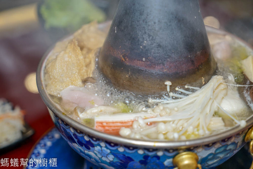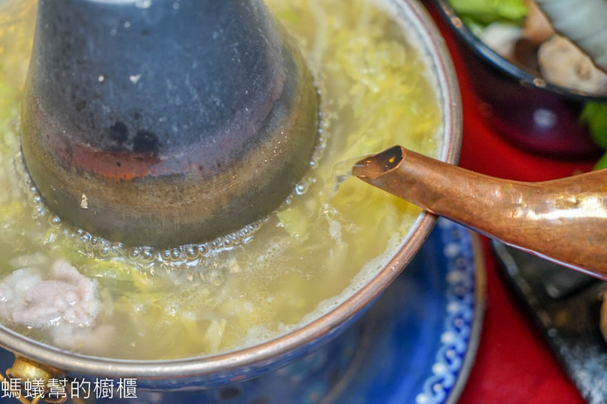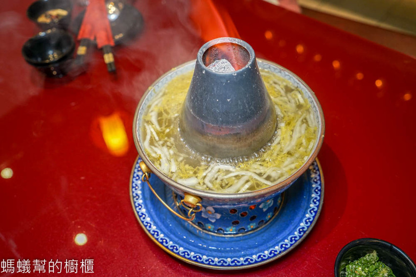 據說乾隆帝在除夕夜吃火鍋,必用「景泰藍銅鍋」,畫工精細的景泰藍鍋不僅觀賞性佳,還盡顯尊貴!景泰藍鍋煮湯時並不會蒸發太多湯底,中央包銅柱保持炭火高溫,留住食材甜味,將酸菜鍋襯的更有質感。