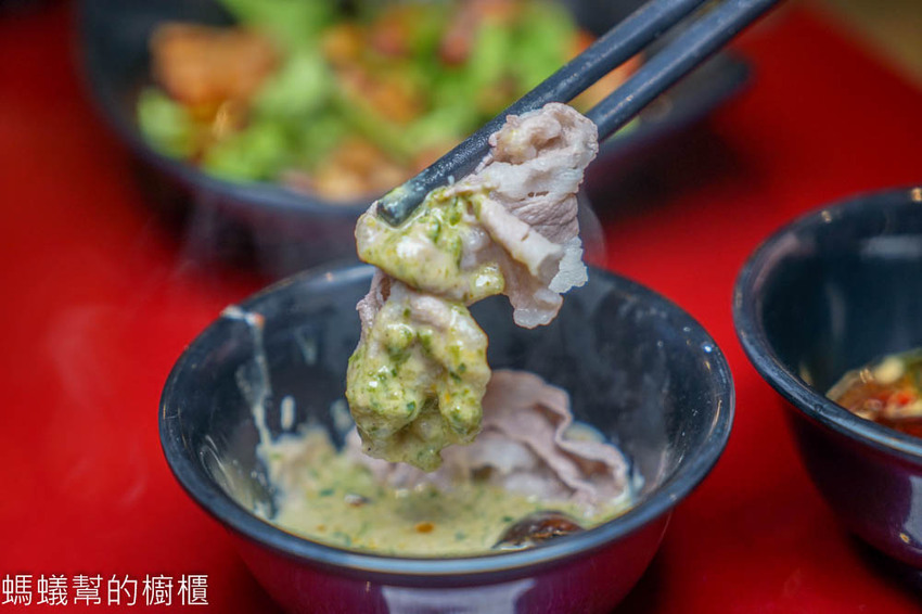油花呈現雪花般紋路,入口不油膩,入鍋底輕涮,七分熟即可撈出先吃原味,再涮一片沾上黃金比例沾醬!醇厚回韻,兩種吃法皆滿足口腹之慾。