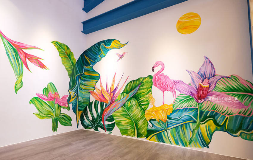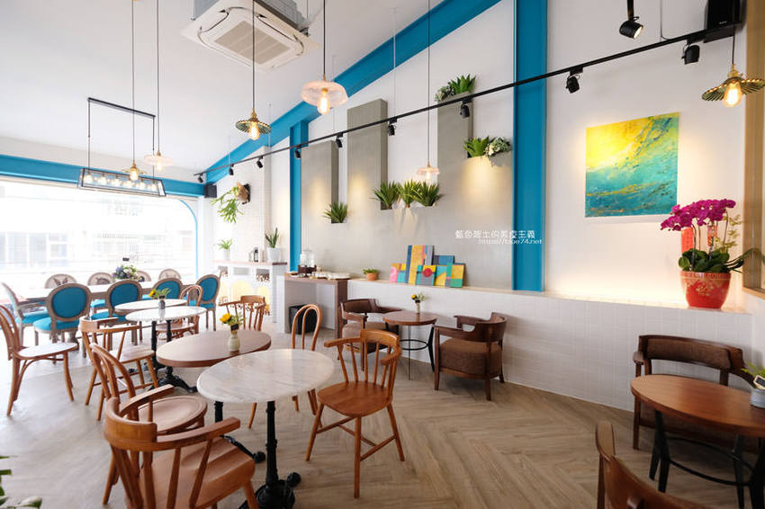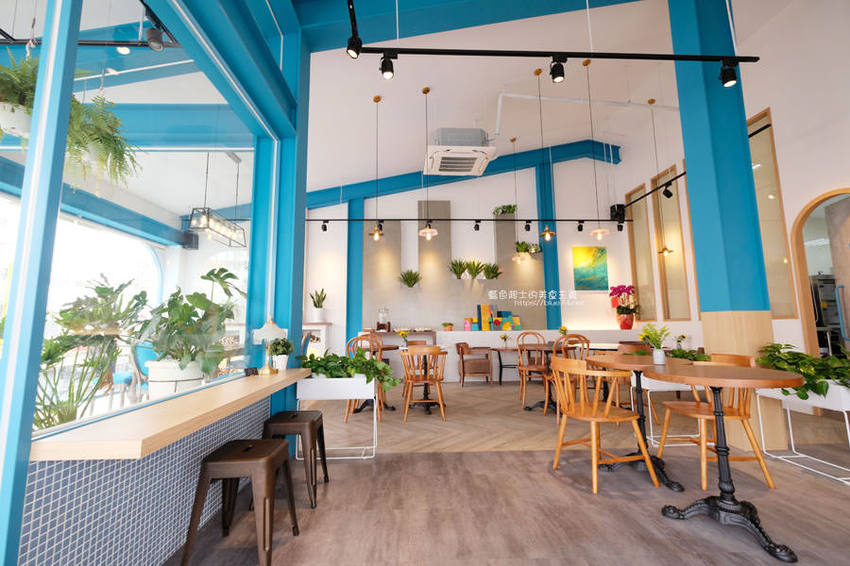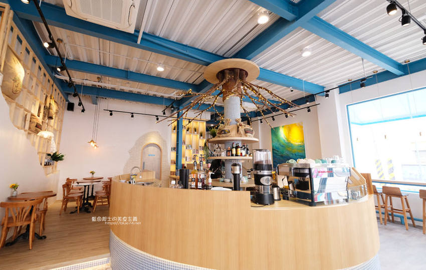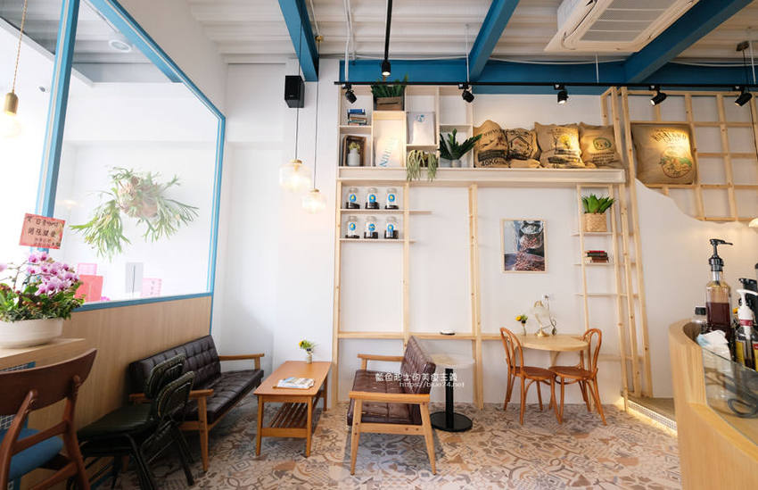 日青咖啡可以說是豐原目前最美的咖啡館了,從醒目的網美彩繪牆跟藍白色系外觀