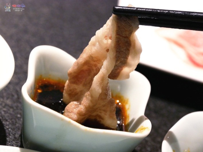 其實我覺得和牛五花沾麻辣醬也蠻好吃的,但是不要沾多,才能好好體會和牛獨有的肉香。