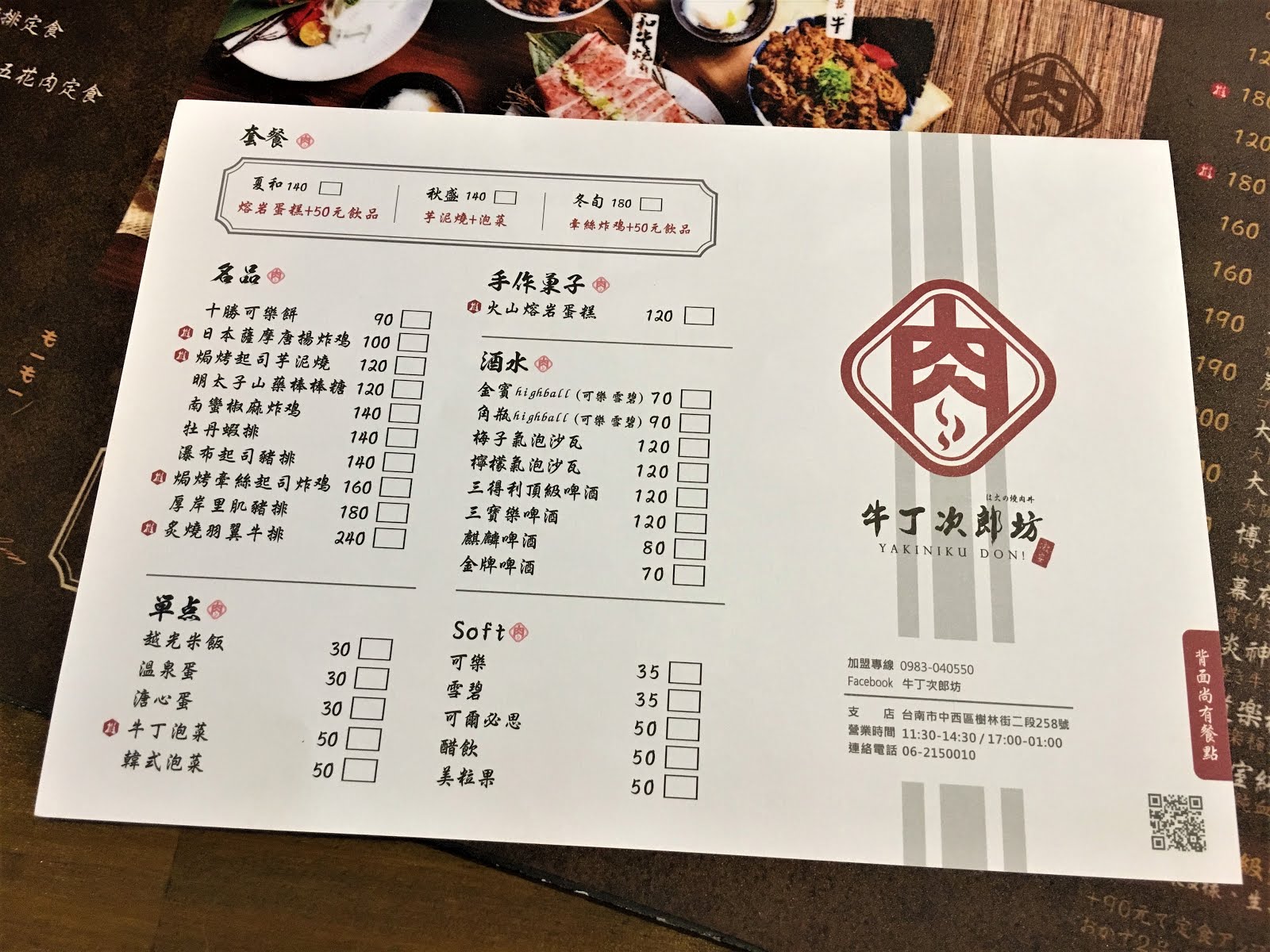 ▼那我們就直接來看牛丁次郎坊的菜單。