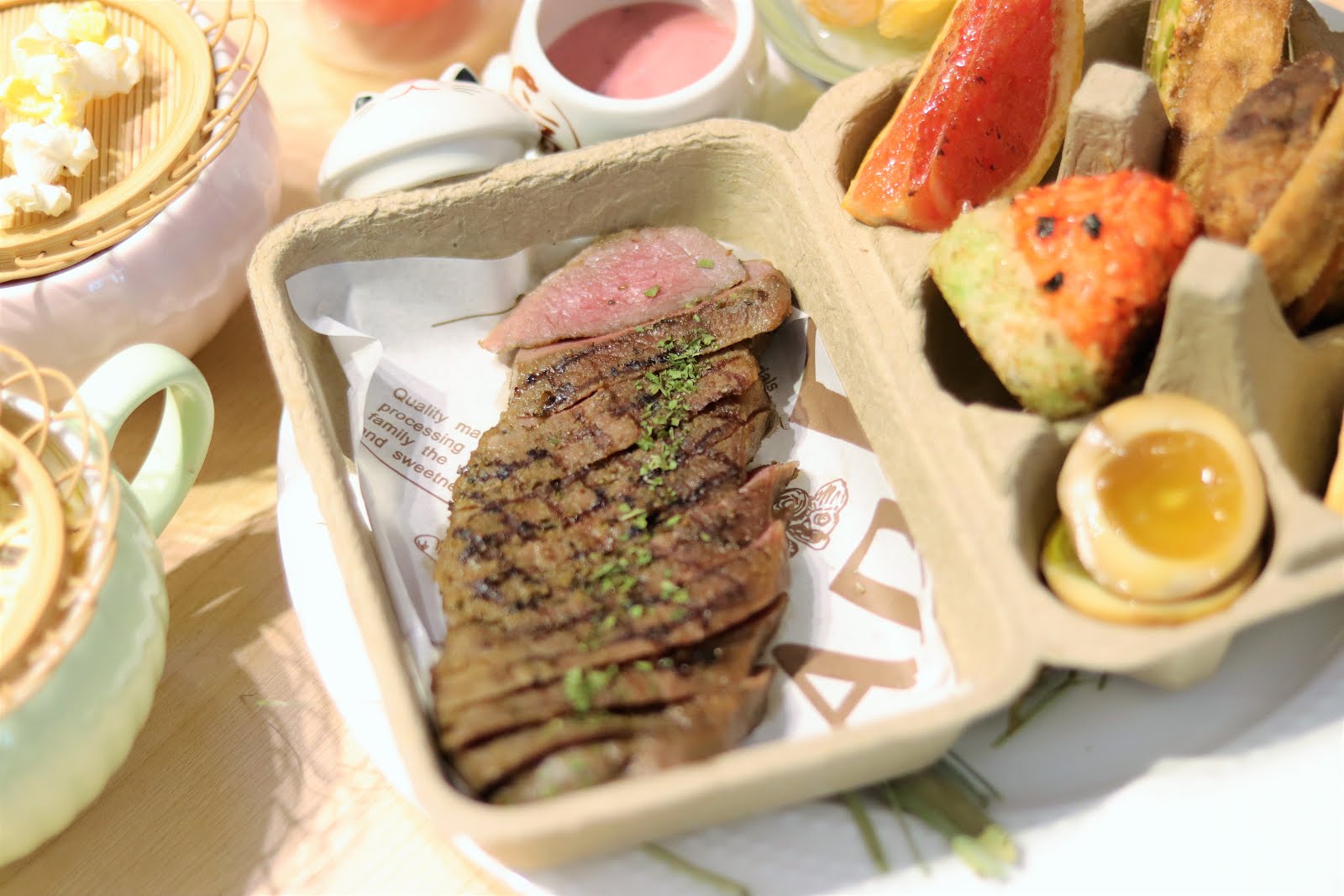 既然都提到雞蛋盒了,上面跟大家說特別的盛裝容器也就是雞蛋盒啦~店家會將所有食材非常完美的放入盒中,餐點送到面前的時候會忍不住先拿起手機開始拍的!