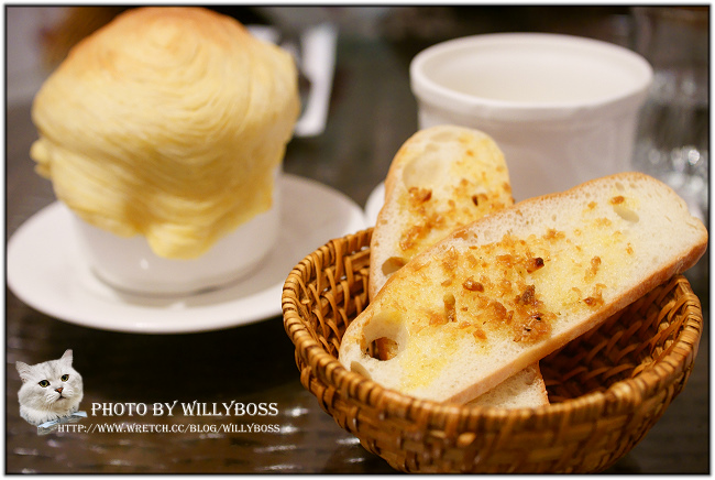麵包烤得微酥吃起來不會太硬(一個人會有一片),除了蒜香之外還有些許特殊的甜味,恕小弟見識不廣不能確定甜味來源,也許下次再問問女主人好了。