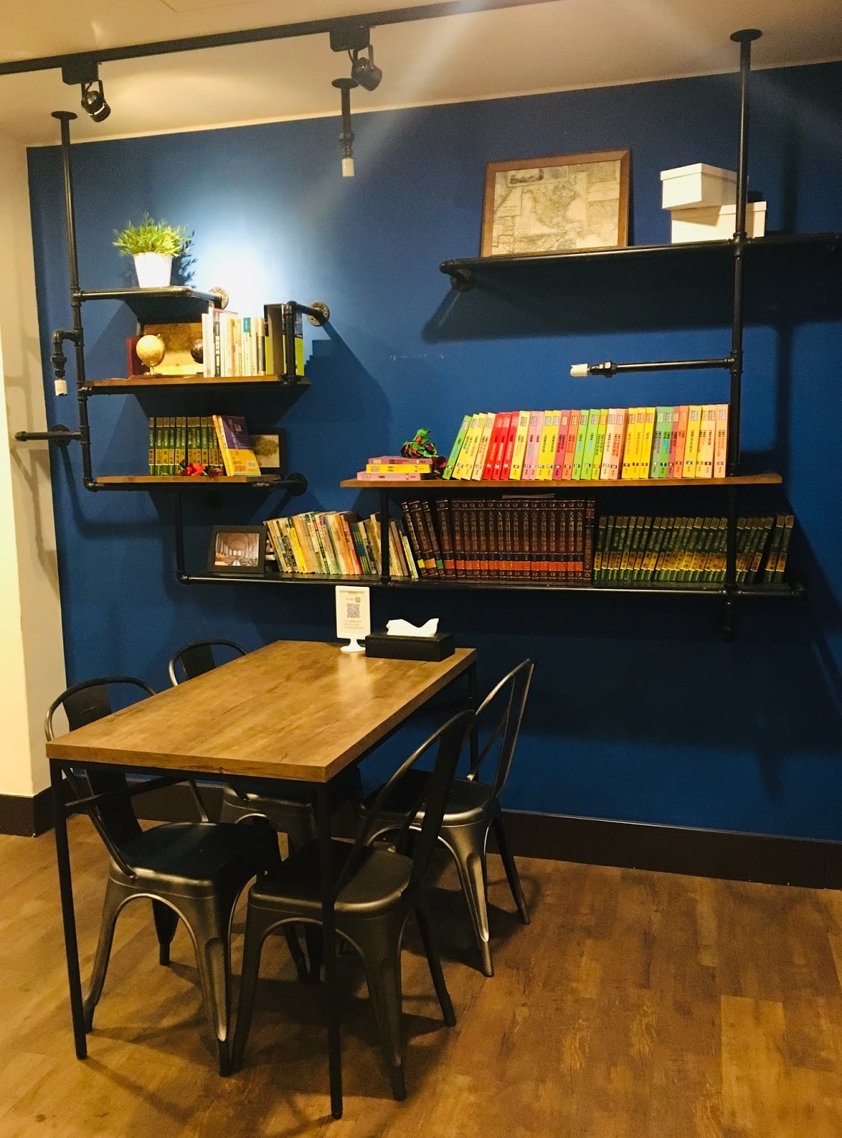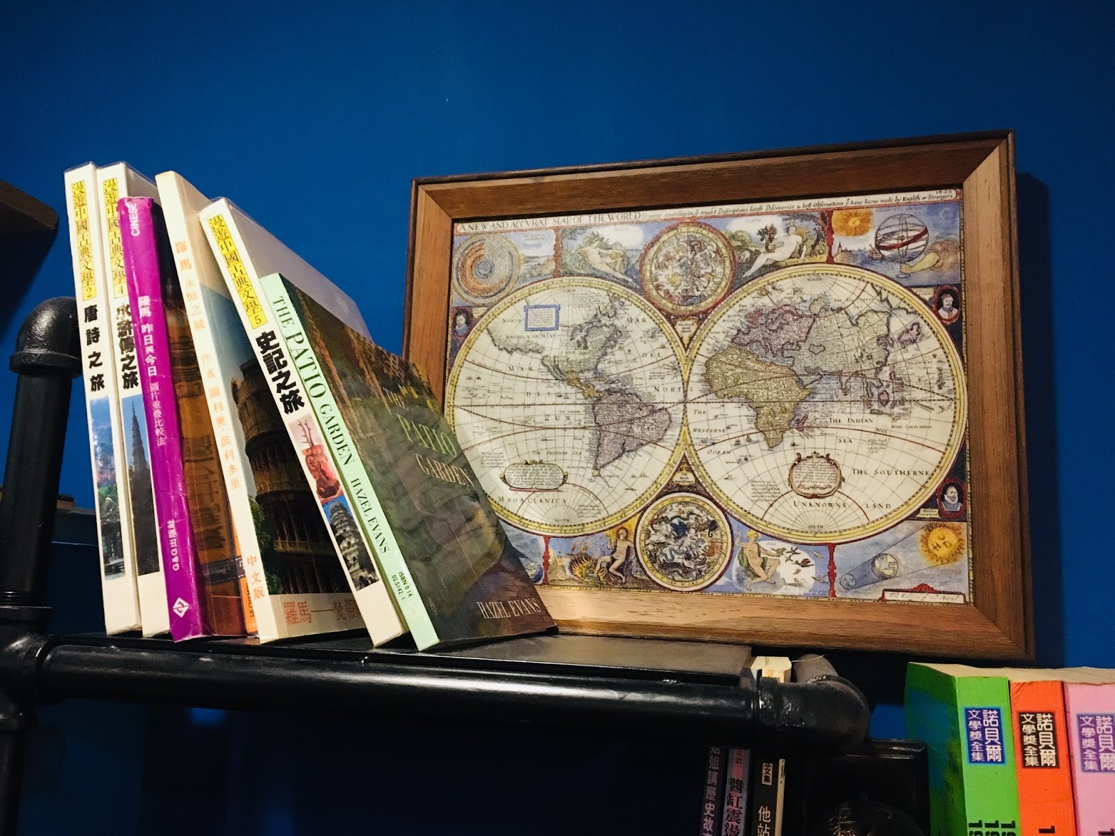 牆上的復古水管書架放置許多滿載歲月痕跡的書籍,仔細一看不只是裝飾,都是值得細細品味的好書,像是古典文學、文學獎全集、旅遊書、高雄文史相關書籍...讓旅行從腦海中開始,「康瀚行旅 Khan Hotel」的文化底蘊也從這些精心挑選的好書中描繪成形。