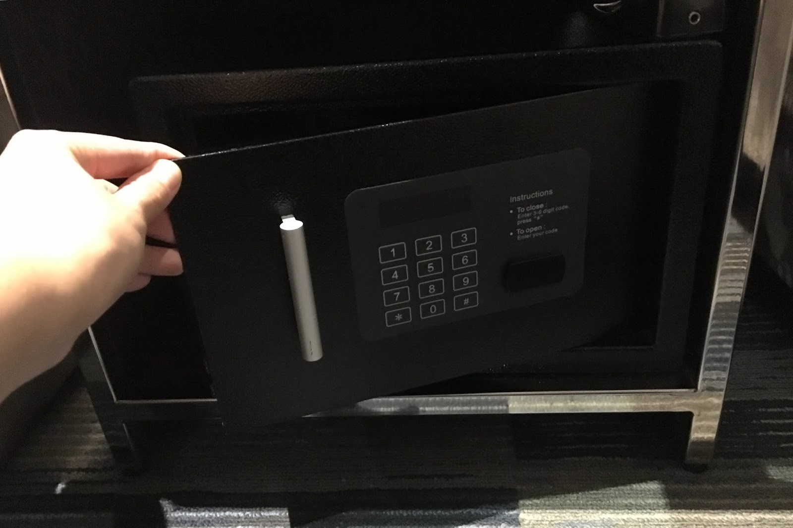 兩張床中間的床頭櫃有「保險箱」,讓住客可以將貴重物品放入後設定密碼,這通常是飯店才有的服務,套房內設置「保險箱」讓人感覺水準更高了。