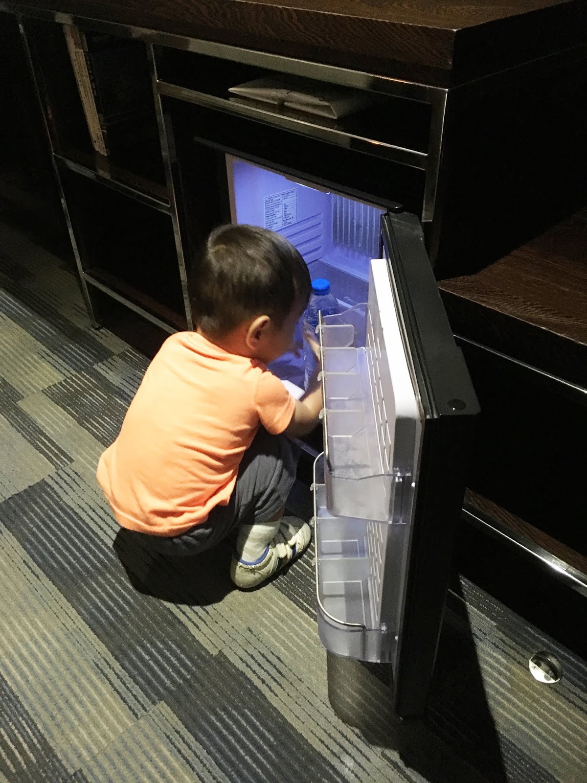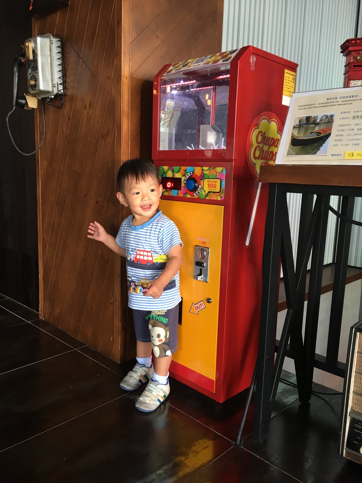 小福寶在大廳發現了「棒棒糖機」,原想叫他看看就好不要買,結果走近一看發現最近有「Facebook粉專按讚」、「加官方Line帳號」可免費玩一次棒棒糖機的活動,馬上跟櫃檯報名參加。小福寶很幸運地抽到兩支棒棒糖,一直愛不忍釋地將戰利品拿在手上,這台棒棒糖機可以說是孩子住宿期間最大的亮點了。