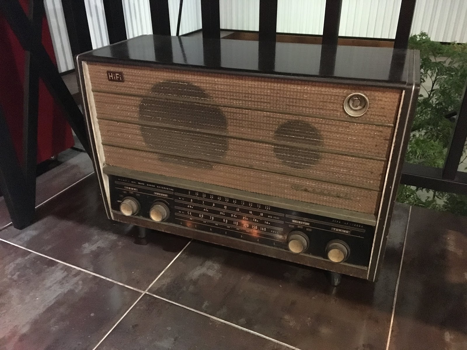 服務人員提示我們注意桌下,我們才發現是台真空管收音機,據說到現在功能都還良好,甚至可以聽廣播,將保存完整的古董擺在這裡和大家分享實在是太奢侈了。