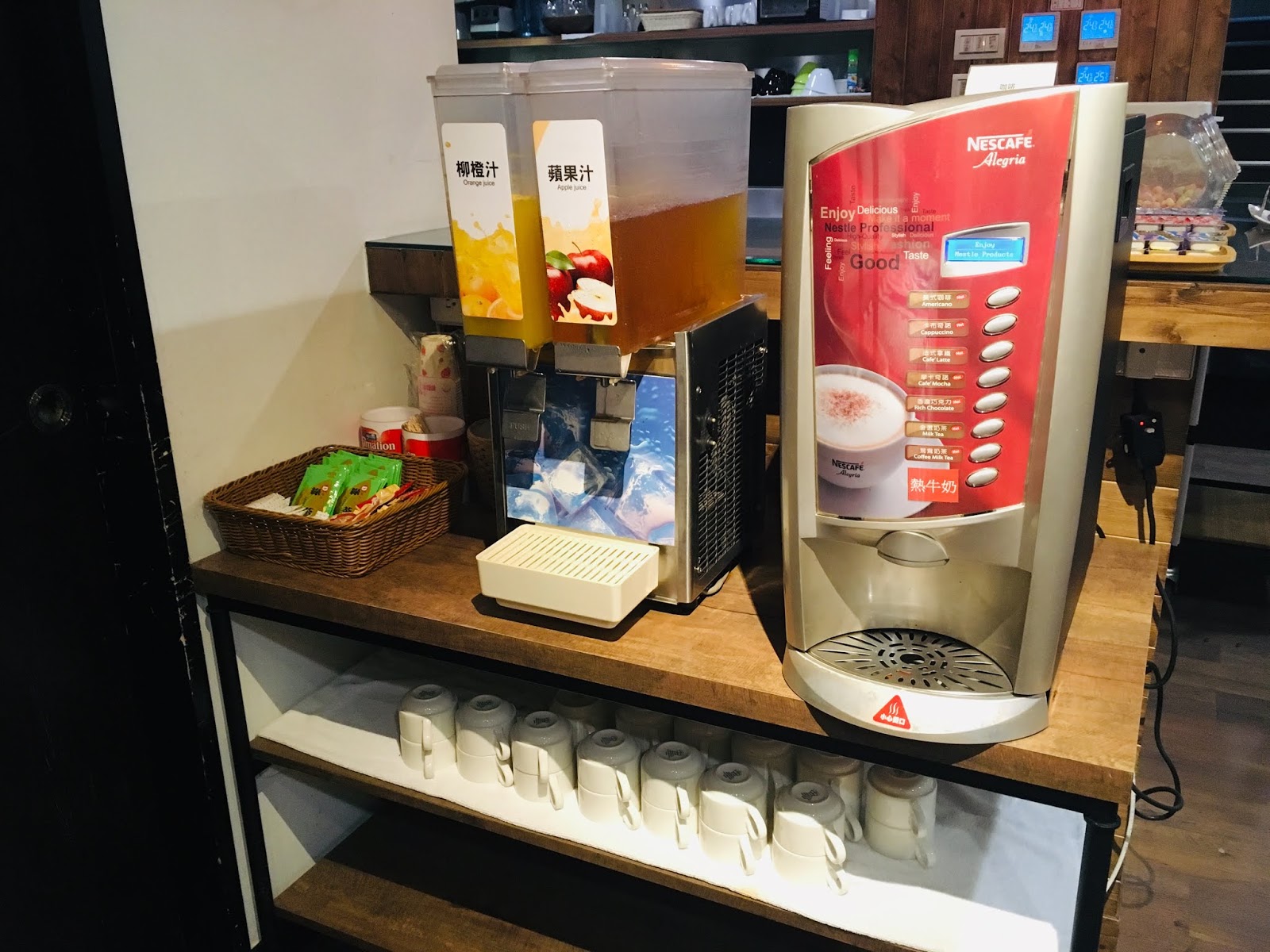 一旁有免費供應的黑咖啡,還可以加一點酒精調成「酒咖啡」,坐在大廳的沙發床上飲用整個人好放鬆。