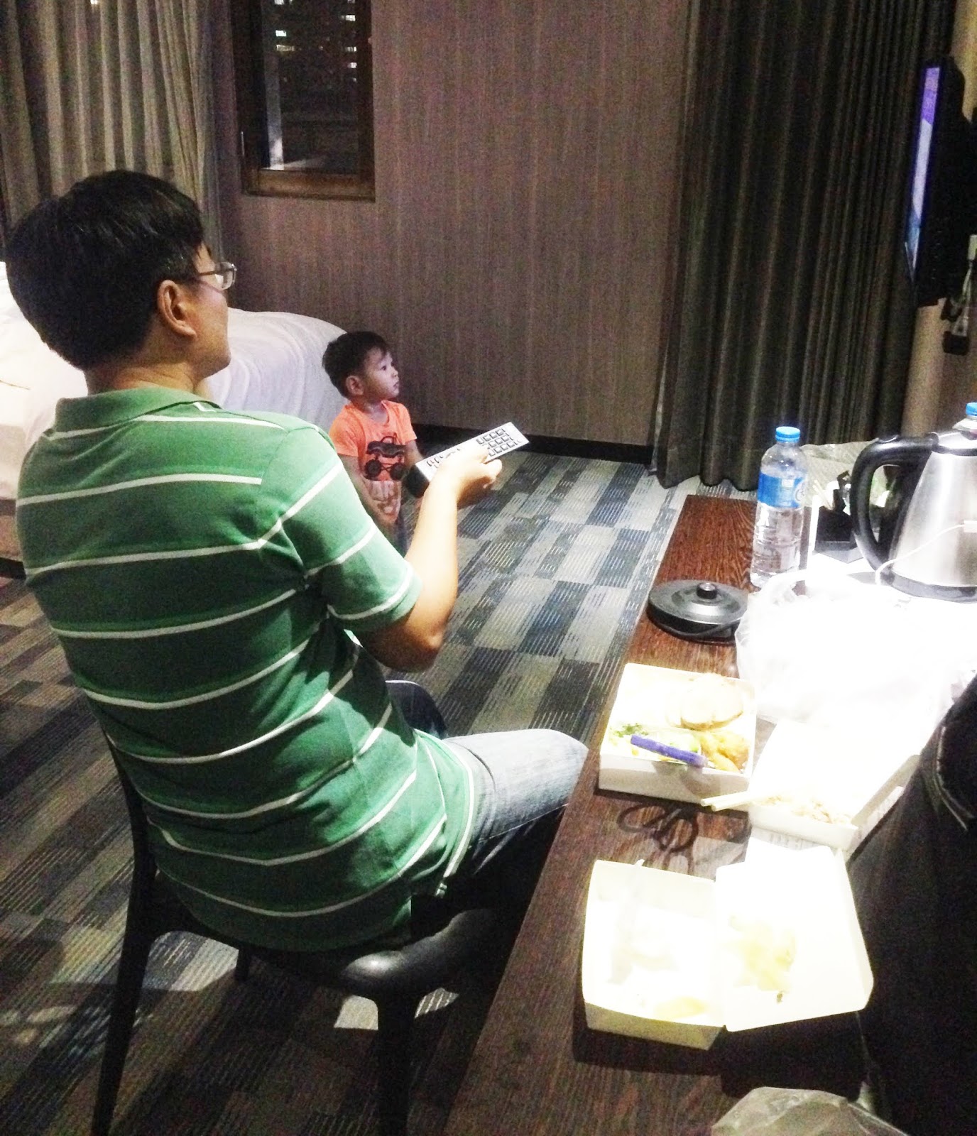 其實出外旅遊最舒適的,就是忙了一天在旅館放空的時刻了!小福寶和老公在房間吃晚餐「七賢鴨肉飯」配卡通,非常的愜意。