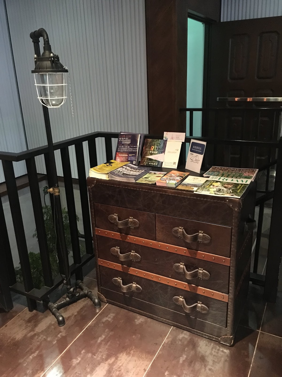 在復古皮箱上,擺放許多高雄的旅遊資訊和藝文活動手冊,讓住客可以了解高雄當下的脈動。