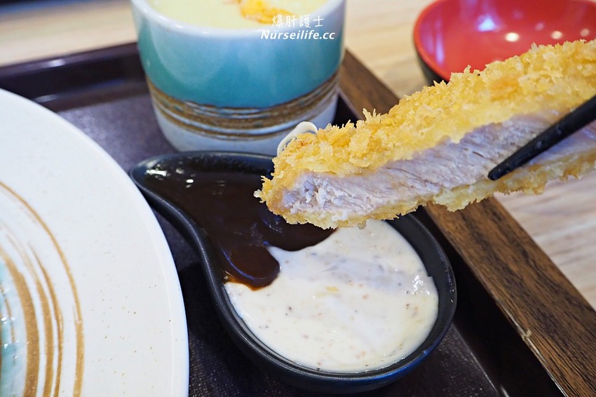 沾醬更是特別,一半是堅果醬一半是豬排醬,豬排沾在中間剛好可以感受到甜甜微酸帶著堅果香氣的口感。