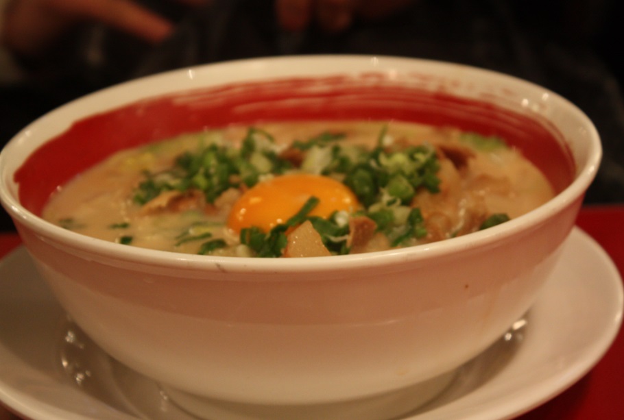 半熟的蛋混入了湯汁中,濃郁的湯頭,反覆在麵條上游移,雖然是鹹香的大骨濃湯,卻不失正宗的日本味!