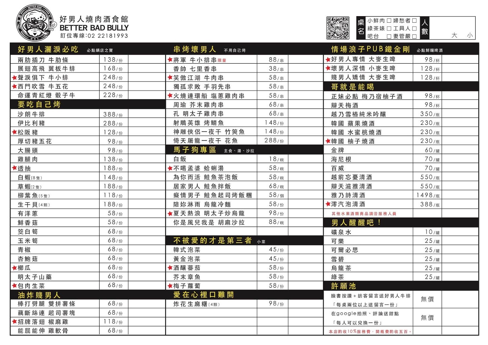 因為路比忘記拍菜單了,所以就在好男人燒肉酒食館的FB下載菜單供各位吃貨參考啦!