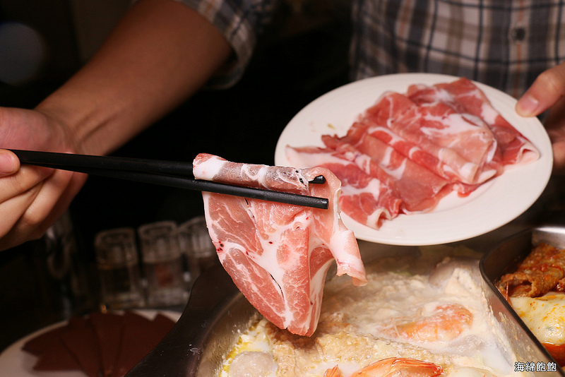 溫體牛配麻辣鍋,梅花豬跟海鮮配牛奶鍋