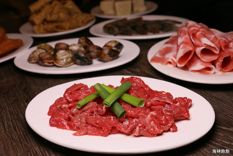 溫體牛肉、梅花豬肉、天使紅蝦、透抽、紐西蘭淡菜、